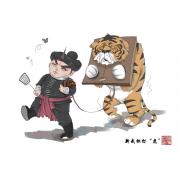 作品简介:这幅作品以传统故事“武松打虎”为内容,生动形象的表现出反腐这一话题,但又不同于以往我们所认知的武松打虎的形式,将武松赋予差官的形象,将老虎拟人化,并戴上了枷锁,体现反腐的力度和决心。还有一点,武松手中还握着一把苍蝇拍,眼睛直盯着飞舞的苍蝇,这体现了习总书记提出的苍蝇老虎一起打的观点。